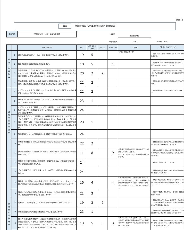 放課後等デイサービス自己評価表