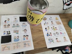 ランダムに選ばれた遊びの中から、どれをやりたいか子ども達に考えてもらっています。