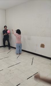 お友達が取れるボールを投げたりと力加減を考えて活動しています。