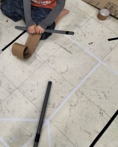 最後のグループはダンボール工作の続きを・・・