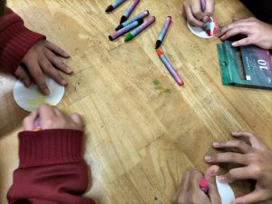 それぞれのコマに、思い思いに色やイラストを描いていきます☆