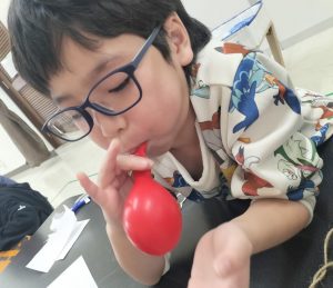 みんな最初の空気を入れるのはとても上手ですが、一気に膨らませる作業が難しい様で