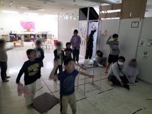 今日の活動は、リズムに合わせて、自分の手や足、体全体を動かす内容となっております😊