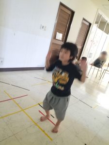 というわけで!今日の日課はリズムに合わせて体を動かす活動を行いました~!