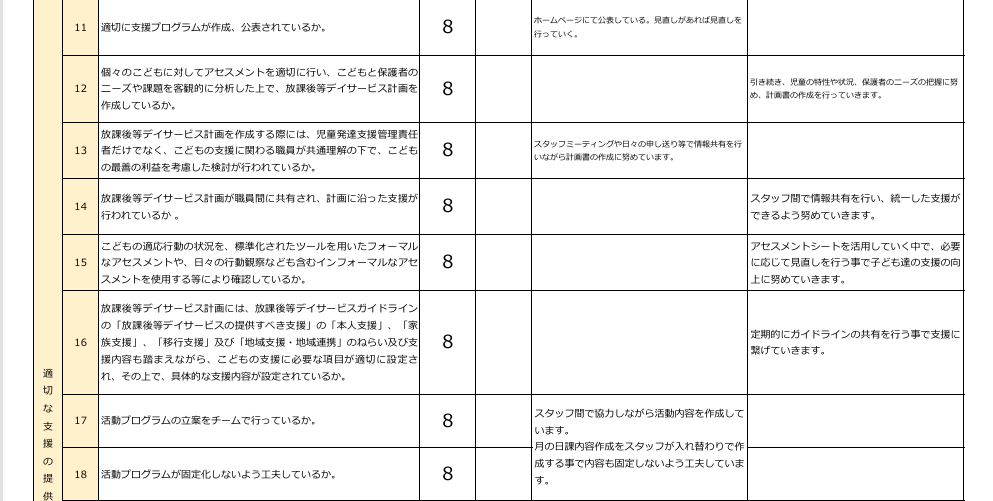 放課後等デイサービス自己評価表