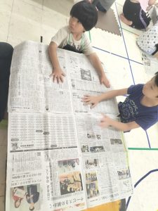 テーブルが汚れないように、新聞紙をセット!