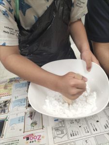 今日の日課はまはろではおなじみの実験「ダイラタンシー作り」を行いました!