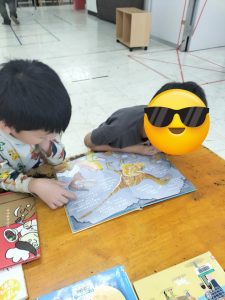 こちらの児童は反対から読むのに挑戦!